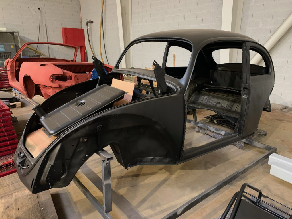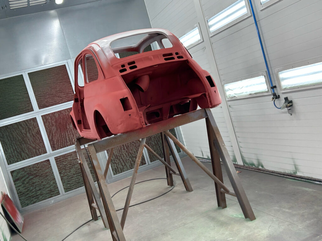Peinture de plusieurs châssis de voiture réalisée en cabine industrielle après préparation et métallisation des surfaces. Ce traitement assure une finition uniforme ainsi qu’une protection durable contre la corrosion et les agressions extérieures.