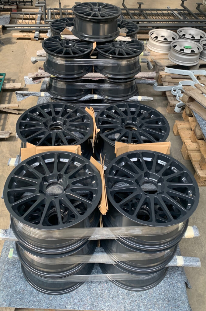 Polymérisation de jantes métalliques pour une finition durable et une protection renforcée contre la corrosion.