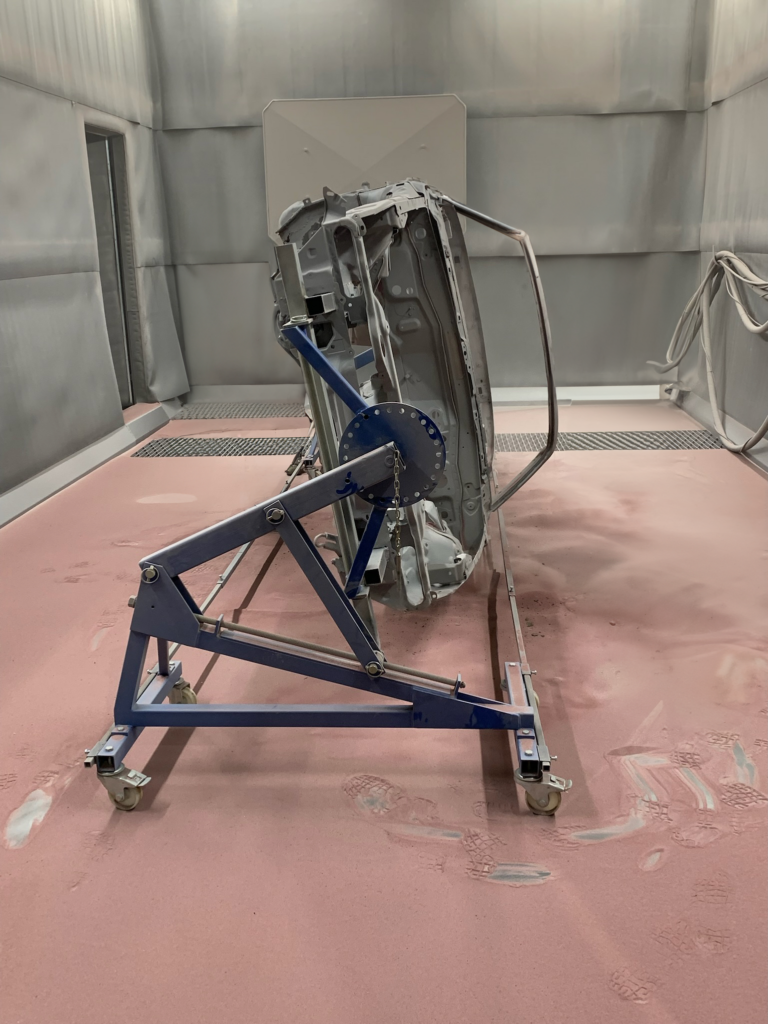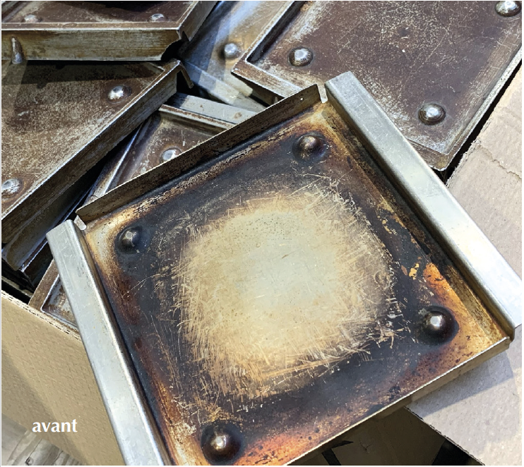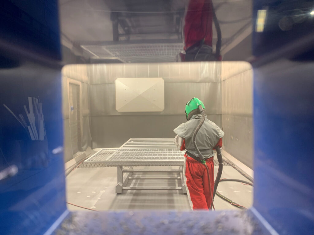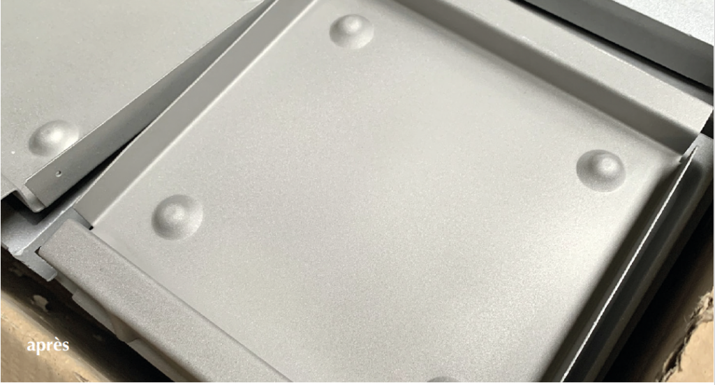 Les surfaces en fonte et en métal sont décapées par la projection de grenaille d’acier dans une cabine de grenaillage.